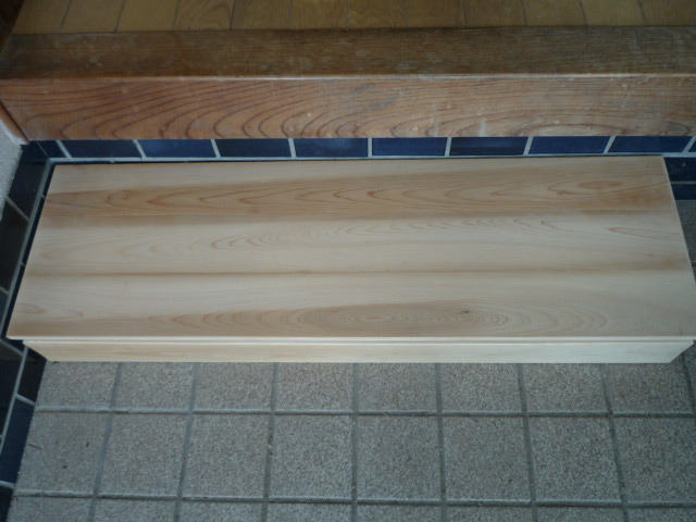 - 高級品 玄関付け床 踏み台 国産檜無垢縁甲板使用 幅約90cm 奥行30cm高さ15cm 高さ調整付き未使用新品