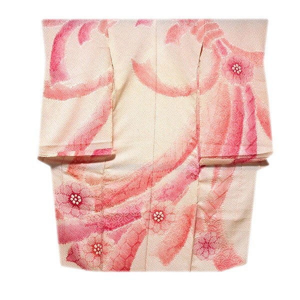 - [和楽屋] 訳あり■「七五三 絹のダイヤモンド 総絞り 三つ身 女の子 3歳から」熨斗に花柄 絵羽柄 白色系 女児 お参り 正絹 未仕立て品 着物