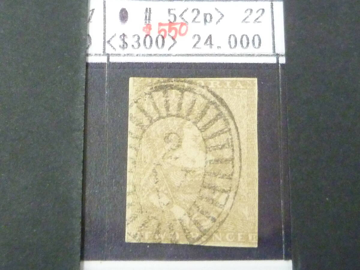 > 25 S №22 オーストラリア切手 VICTORIA 1850-1861年 SC#5 2p 使用済 【2020年版SC評価 $550】 ※説明欄必読