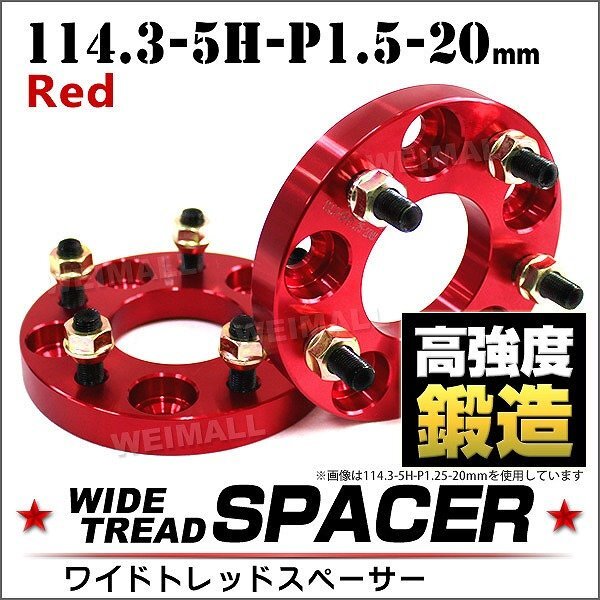 - Durax正規品 ワイドトレッドスペーサー 114.3-5H-P1.5-20mm ナット 赤 2B スペーサー 5穴 トヨタ 三菱 ホンダ マツダ ダイハツ 2枚セット