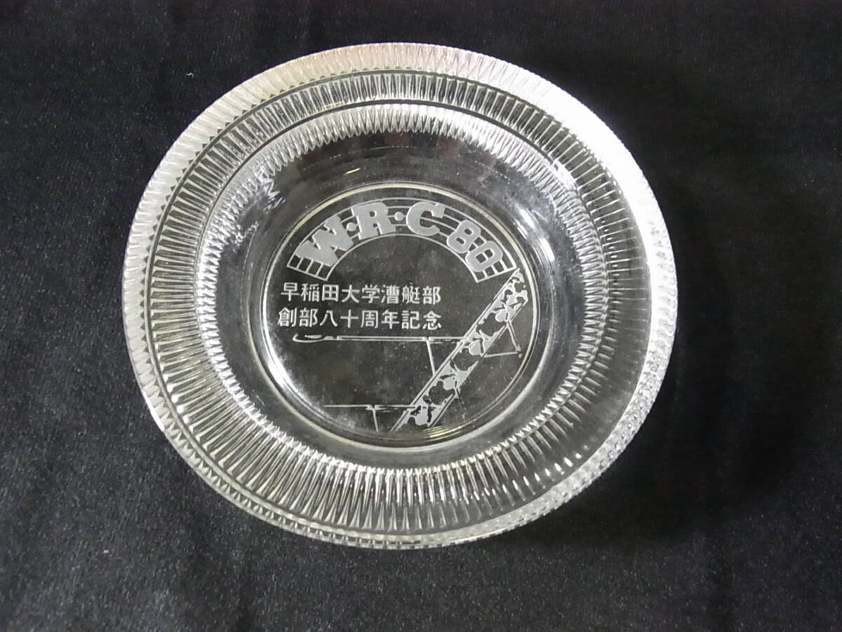 - 即決あり 昭和レトロ 早稲田大学 漕艇部 灰皿 ガラス製 創部80周年記念 早大 ボート 競艇 喫煙具 煙草 校章 レガッタ 体育会 記念品