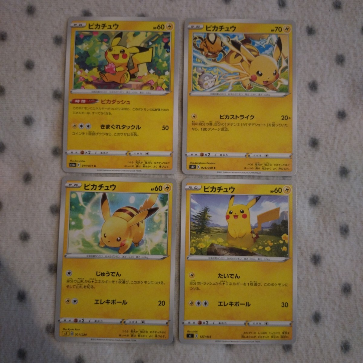 - ポケモンカード S ☆ ピカチュウ 4種セット ☆ SA Sl S10a S12 ☆ ピカダッシュ きまぐれタックル ピカストライク ☆ スタートデッキ100 等