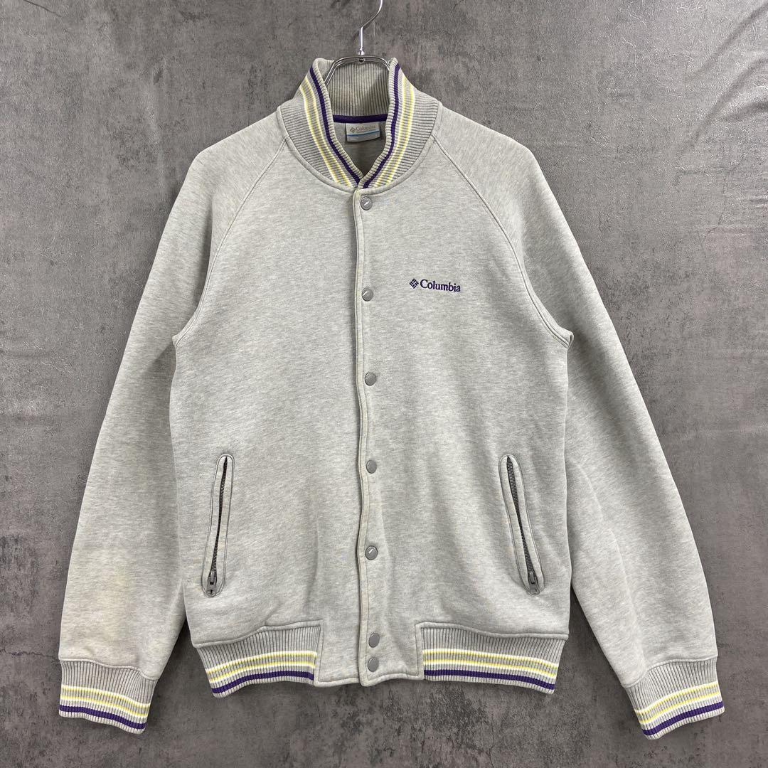 > コロンビア グレー×紫黄 ロゴ刺繍 スナップジャケット スウェット【5882】