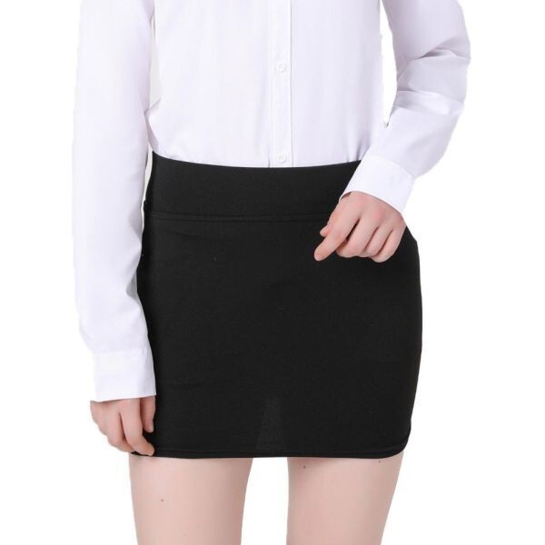 - タイトスカート ミニ ストレッチ 無地 膝上 レディース ウエストゴム 美脚 ひざ上 フリーサイズ ブラック