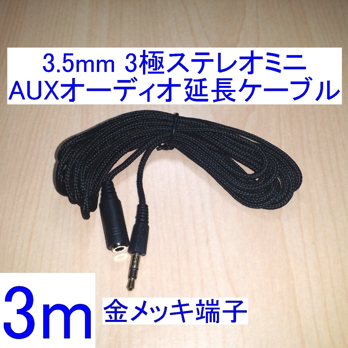 - 【送料込/即決】3.5mm 3極ステレオミニプラグ AUXオーディオ延長ケーブル/コード 3m 新品 スピーカー/イヤホン/ヘッドホンに 金メッキ