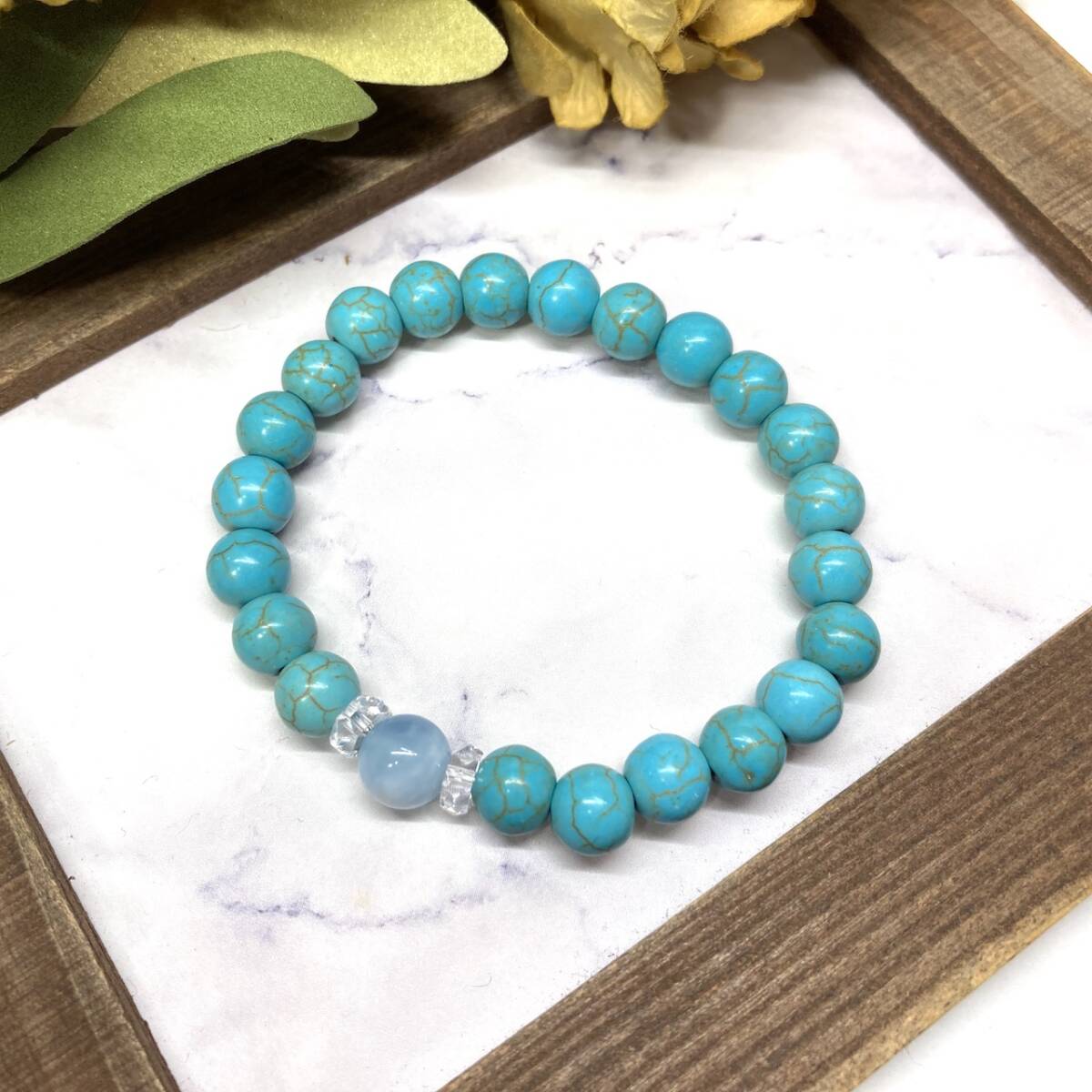 - アクアマリン&ターコイズ ブレスレット パワーストーン レディース 女性 金運 恋愛 開運 数珠ブレス お守り
