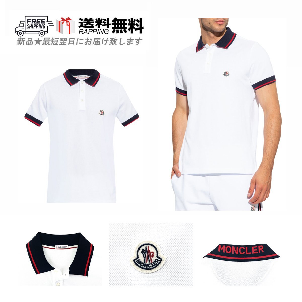 > L686-M.. MONCLER モンクレール ポロシャツ POLO 半袖 カラー レタリング コットン 刺繍 ロゴ ★ 001 ホワイト