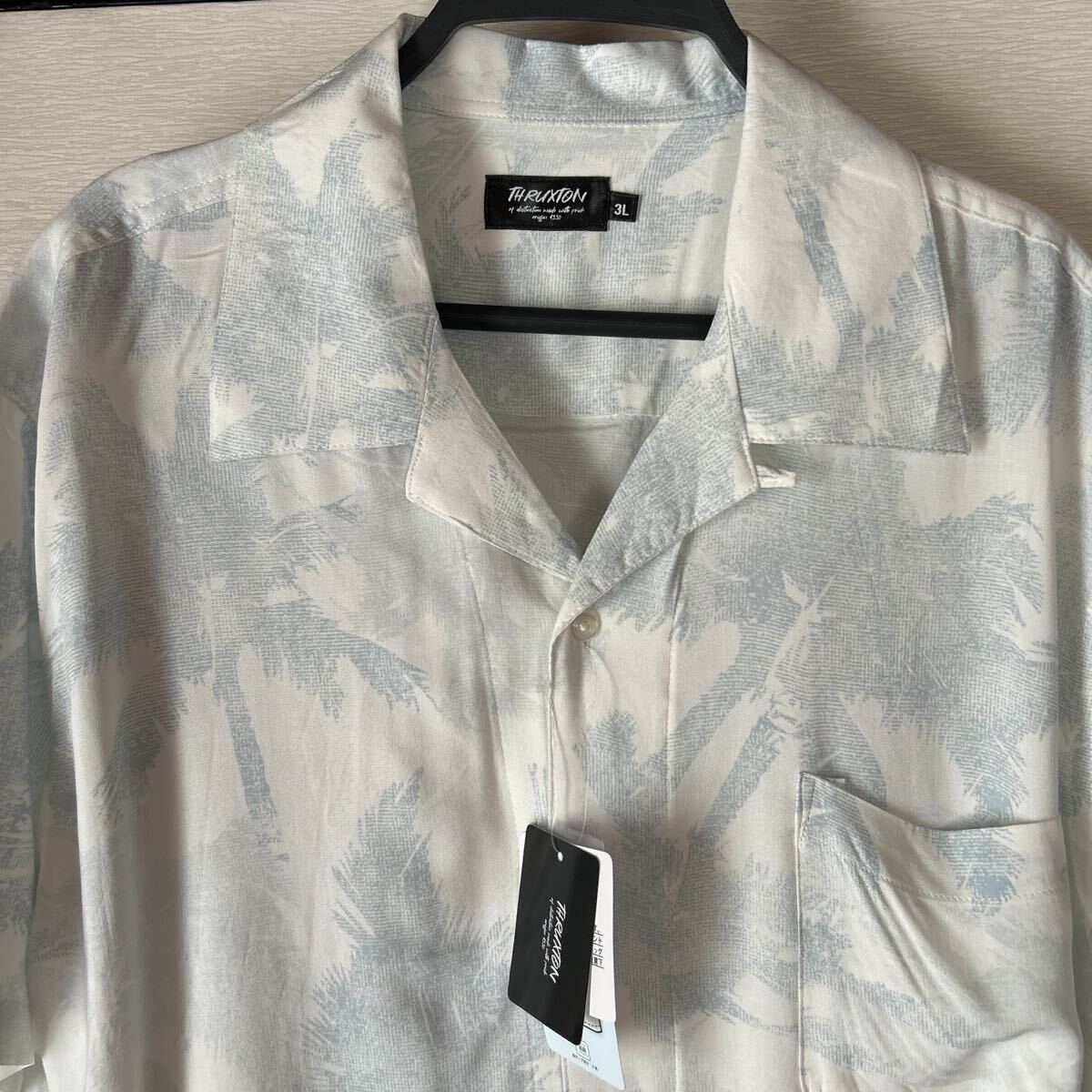 - 3L パームツリー ヤシの木 ホワイト 開襟BOXアロハシャツ 新品未使用タグ付き 一枚限り THRUXTON