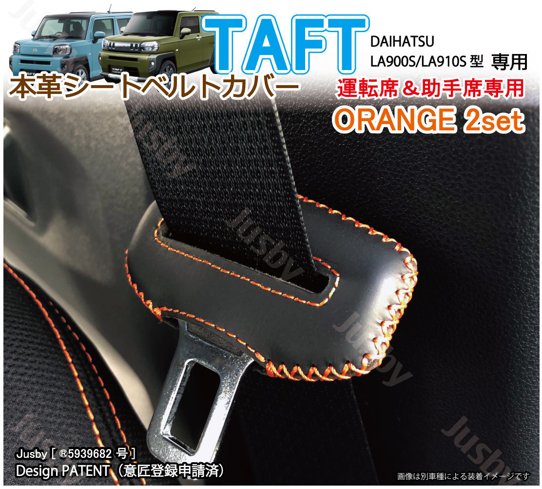 - (オレンジ/運転席&助手席用) ダイハツ タフト TAFT 本皮 シートベルトカバー レザーカバー ドレスアップ パーツ カスタム アクセサリー