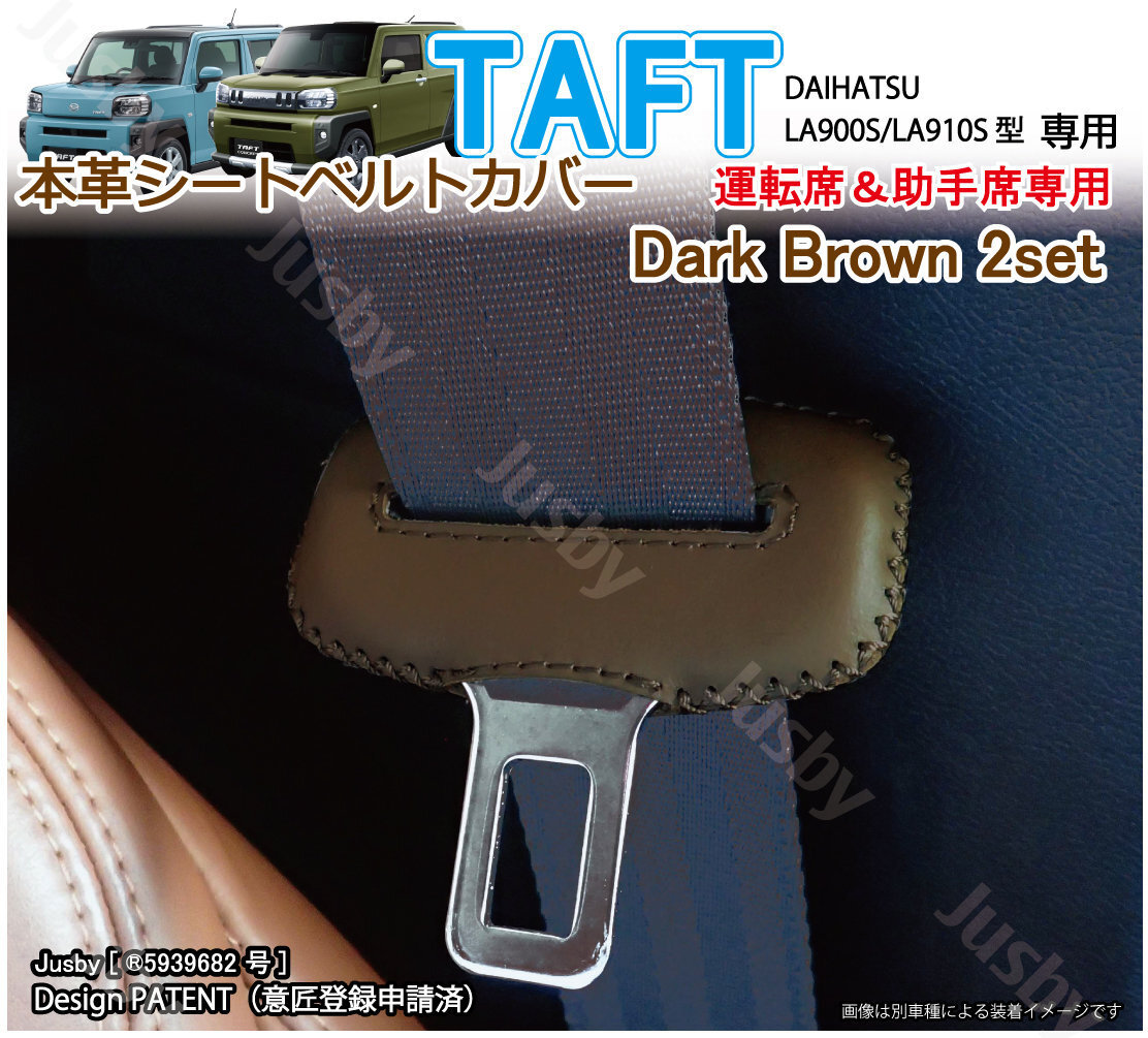 > (ダークブラウン/運転席&助手席用) ダイハツ タフト TAFT 本皮 シートベルトカバー レザーカバー ドレスアップ パーツ アクセサリー