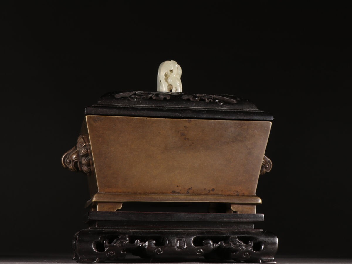- 「明代 底款 古銅彫 双獅耳老銅香薰炉」旧銅器 置物擺件 賞物 中国古美術 旧蔵出