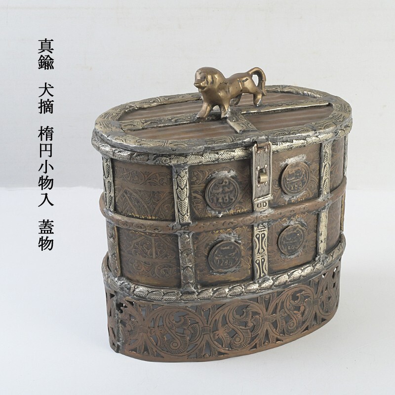 - 東南アジア美術 アンティーク 真鍮 犬摘 楕円小物入 蓋物 古玩 CKEA