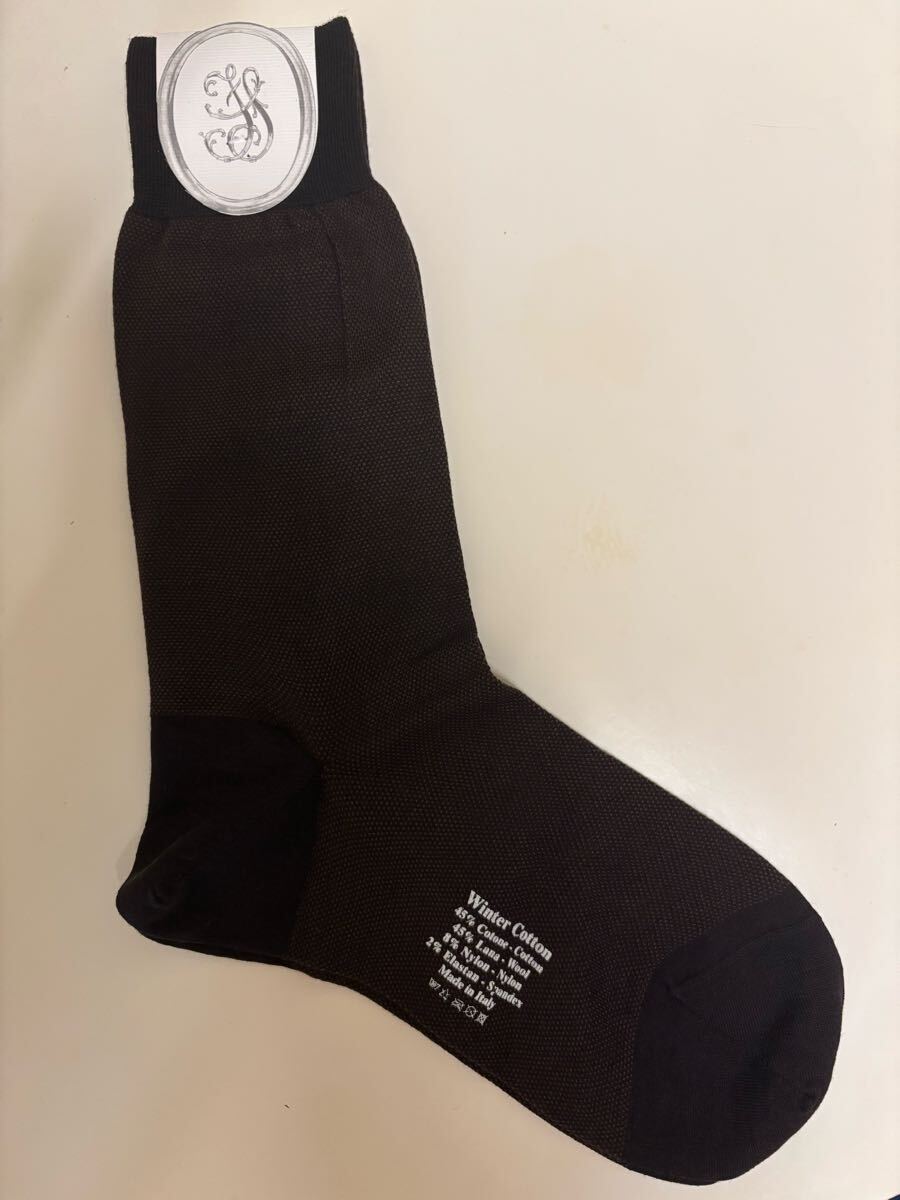 - Sozzi イタリア製 ダークブラウン ソックス 秋冬 コットン ウール 靴下