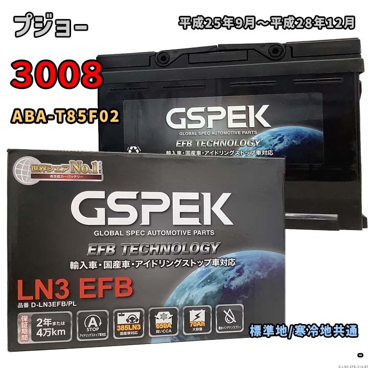 - バッテリー GSPEK D-LN3EFB/PL プジョー 3008 ABA-T85F02 平成25年9月~平成28年12月 1.6 THP 対応 LN3EFB 互換 314