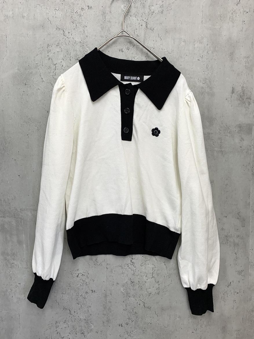 > ゆうパケットOK MARY QUANT マリークワント バイカラーデイジー 長袖 ポロシャツ sizeM/白/黒 ◇■ ☆ fid0 レディース