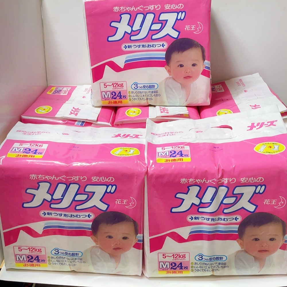 - 即決 送料無料 未使用 長期保管品 レトロ★【6パック まとめて】 花王 メリーズ 新うす型おむつ 紙オムツ Mサイズ 24枚 元箱付き