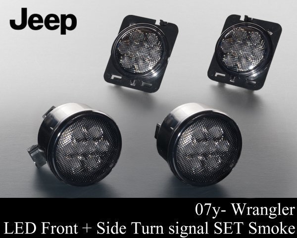 > LED フロント ウィンカー + サイド マーカー スモーク 【適合 07- JKラングラー アンリミテッド 2ドア 4ドア 2007 08 09 10 V075