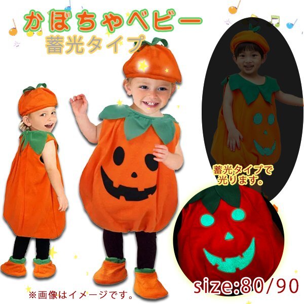 - 送料無料 かぼちゃ ベビー 蓄光タイプ 選べるサイズ ハロウィン ロンパース パーティー パンプキン ジャックオーランタンフリース コスプレ