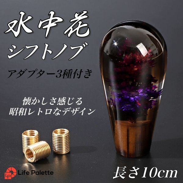 - 水中花シフトノブ ワンオフ 和風 デコノブ 水中花 デコトラ 旧車 トラック野郎 昭和 当時 シフトノブ変換 ぼかし パープル 紫 100mm 10cm