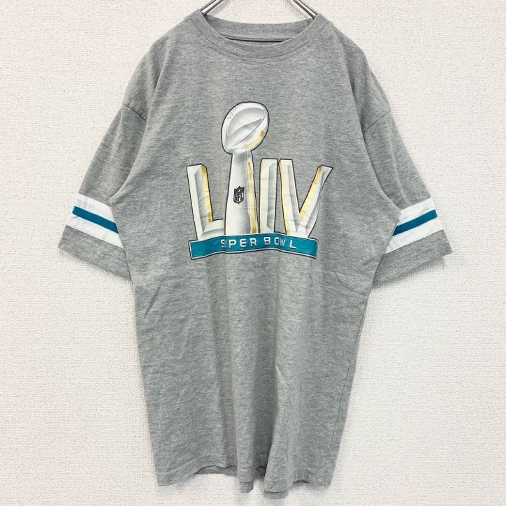 > 古着 used Majestic NFL 半袖オフィシャルプリントTシャツ SUPER BOWL クルーネック グレー Lサイズ