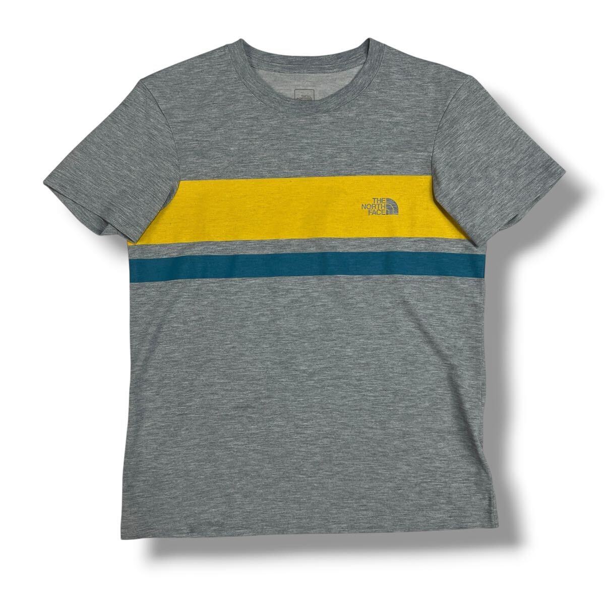 - OK0930 THE NORTH FACE ザノースフェイス 半袖Tシャツ 胸元ボーダー ワンポイントロゴ グレー Sサイズ