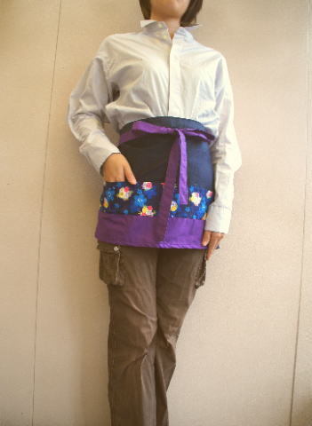 - 【現品限り】着物素材使用1200円手作りカフェエプロン【新品】