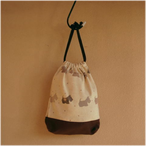 - 【入学、入園!】380円ワンワンシルエット(ベージュ)パッチワーク巾着袋 【手作り小物】