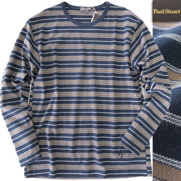 - 新品 ポールスチュアート ボーダー クルーネック Tシャツ L 紺 茶 【I54206】 Paul Stuart メンズ カットソー 丸首 コットン 長袖