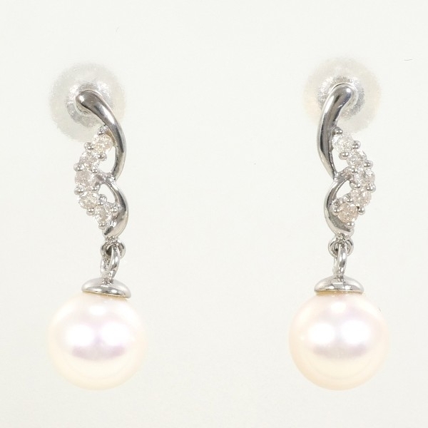 K18WG ピアス パール(真珠) ダイヤ 0.05 ×2 総重量約1.5g 中古 美品 送料無料