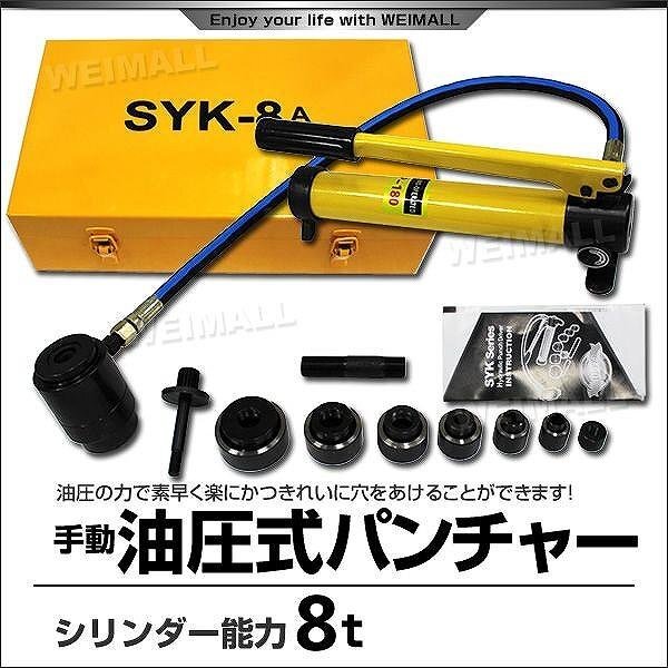 - 油圧パンチャー 手動 油圧パンチ 8ton ダイス6個セット付 業務用