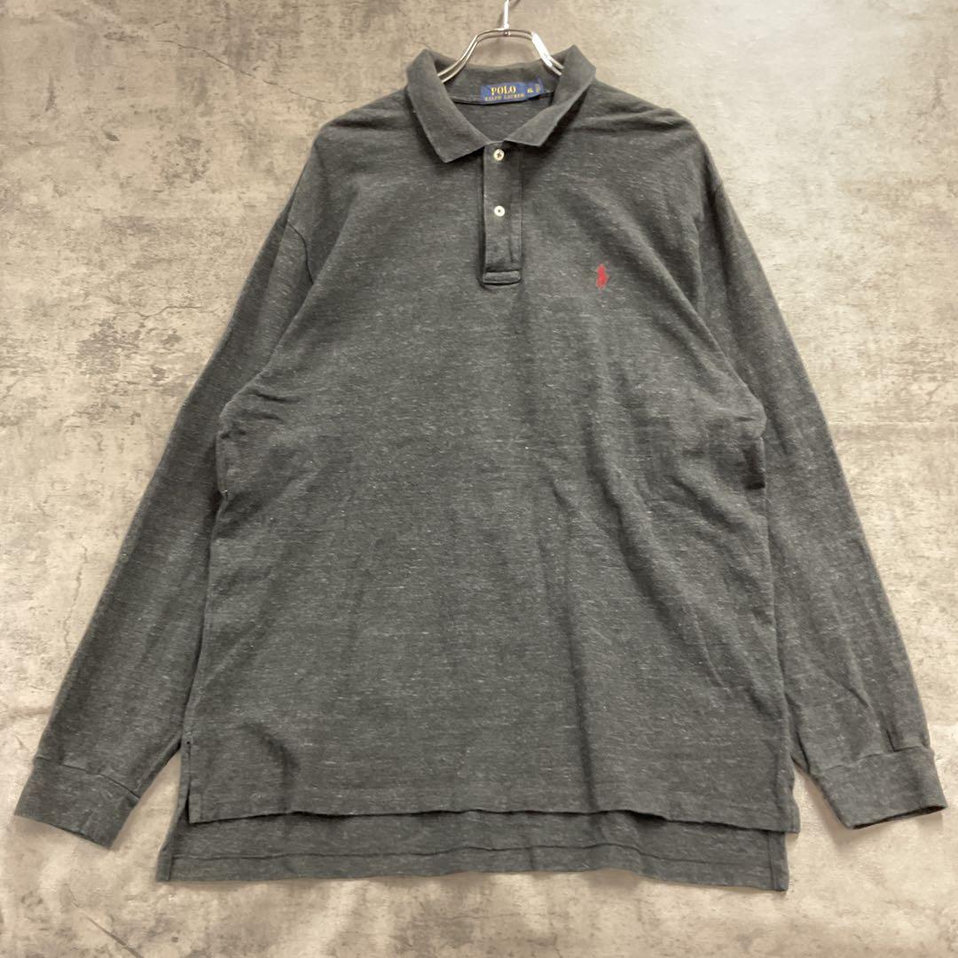 - ラルフローレン 長袖ポロシャツ 濃灰 XL 刺繍ロゴ 定番人気古着 【5934】