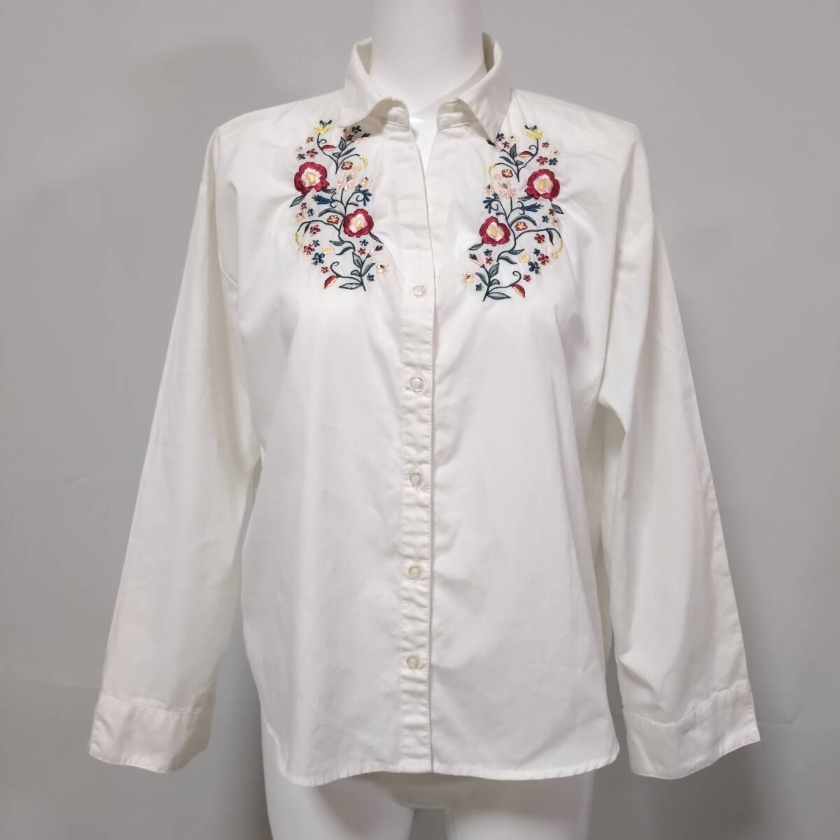 - Holiday Holic ホリデーホリック ししゅう入り レギュラーネック シャツ 7分袖 花柄