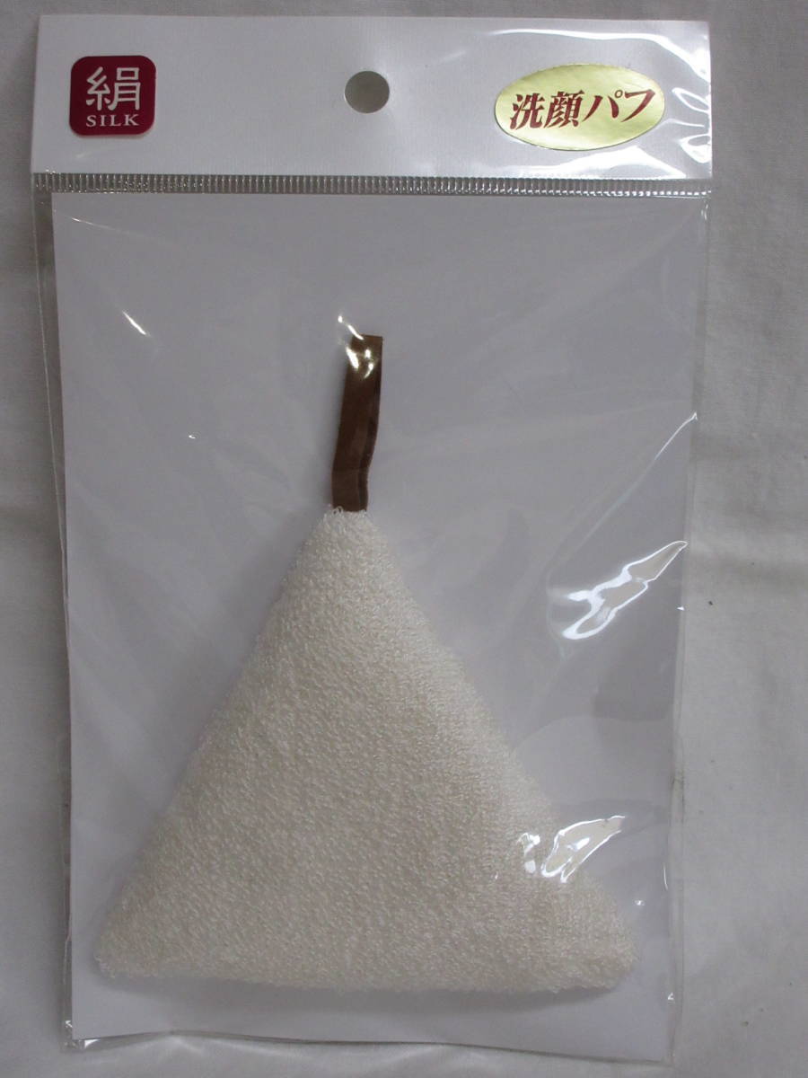 - ★ 疲れた肌のお手入れに! シルク・パフ 美肌効果満点 博多織の絹洗顔パフ 生成り色 三角型 追加割引有
