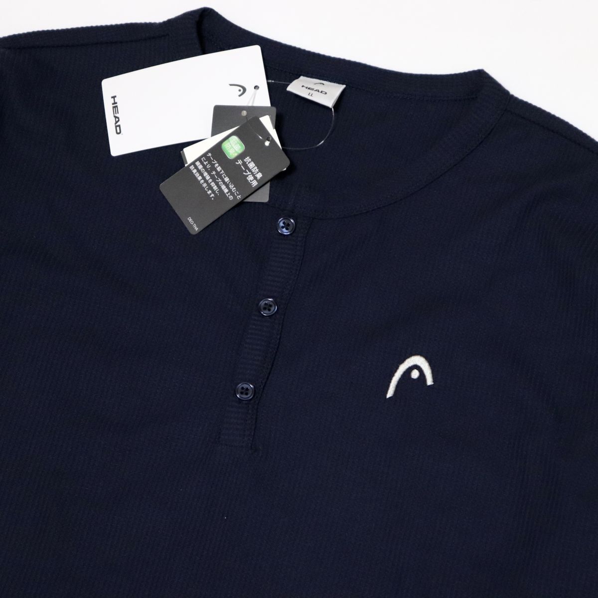 - ★ヘッド HEAD 新品 メンズ 抗菌防臭 ヘンリーネック 長袖 Tシャツ ロンT ロング 紺 XLサイズ [1251015A2HD-74-LL] 一 三 参★QWER★