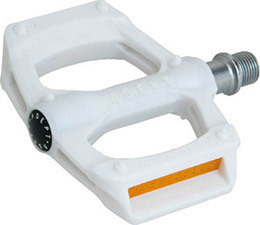 前後に長く、踏み込み易い形状のプラスチック製フラットペダルです。