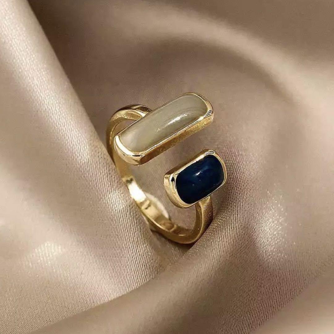 - オープンリング 2カラーストーン ゴールド フリーサイズ 韓国 指輪 シンプル レディース アクセサリー 人気 新品