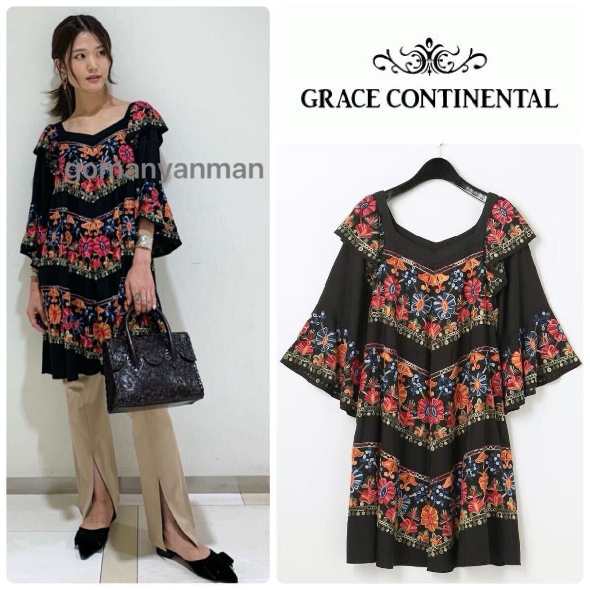 グレースコンチネンタル 2WAY フレアチュニックワンピース 3万9600円のお品 スタイリスト私物 ふんだんにあしらった贅沢な刺繍に心惹かれる、チュニック丈のワンピースです