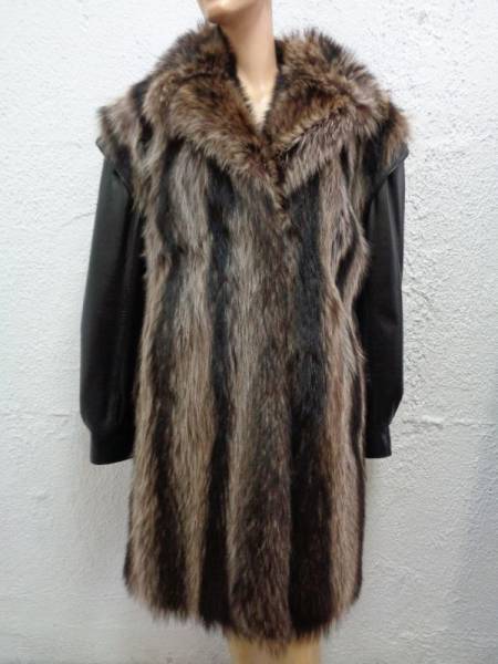 - ラクーン&ブラックレザー毛皮コート サイズ6