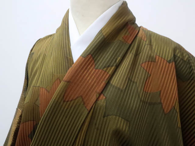 - 《京都一輝堂》【着物】小紋 楓文 身丈約158cm 裄丈約64cm 25z06-3218