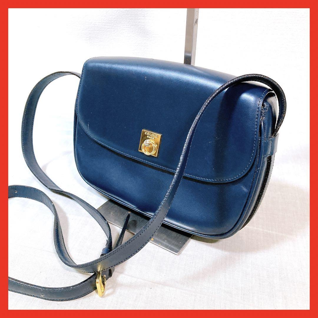 - 777 セリーヌ ショルダーバッグ ネイビー ゴールド金具