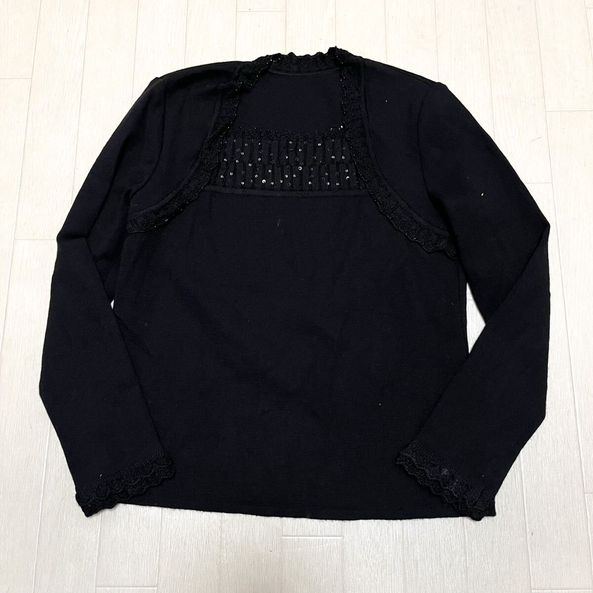 > 和850★① Leilian レリアン ニット セーター 長袖 スパンコール カジュアル シルク混 カシミヤ混 9 ブラック レディース
