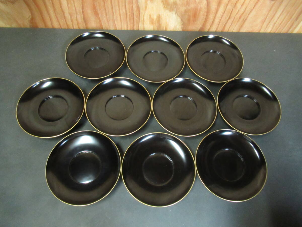 - 【広吉堂】輪島塗 茶托 黒塗り 木製 美品 10枚B