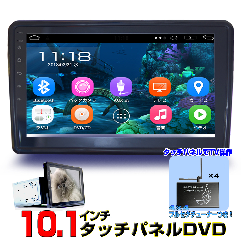 車載 カーナビ 2DIN 10.1インチDVDプレーヤー 地デジCPRM対応 VRモード Android9.0 ラジオ SD Bluetooth内蔵 16GBHDD アンドロイド スマートフォン iPhone WiFi 無線接続【一年保証】+専用地デジ4 x 4フルセグチューナーセット「D482」