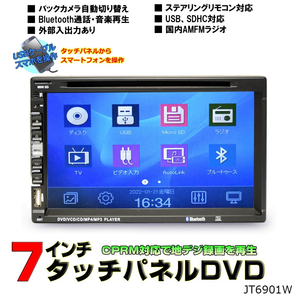- 車載 DVDプレーヤー アンドロイドスマホ連携表示 CD USB SD動画音楽ファイル再生 外部入出力あり ブルートゥース内蔵 音楽再生 ラジオ[D54