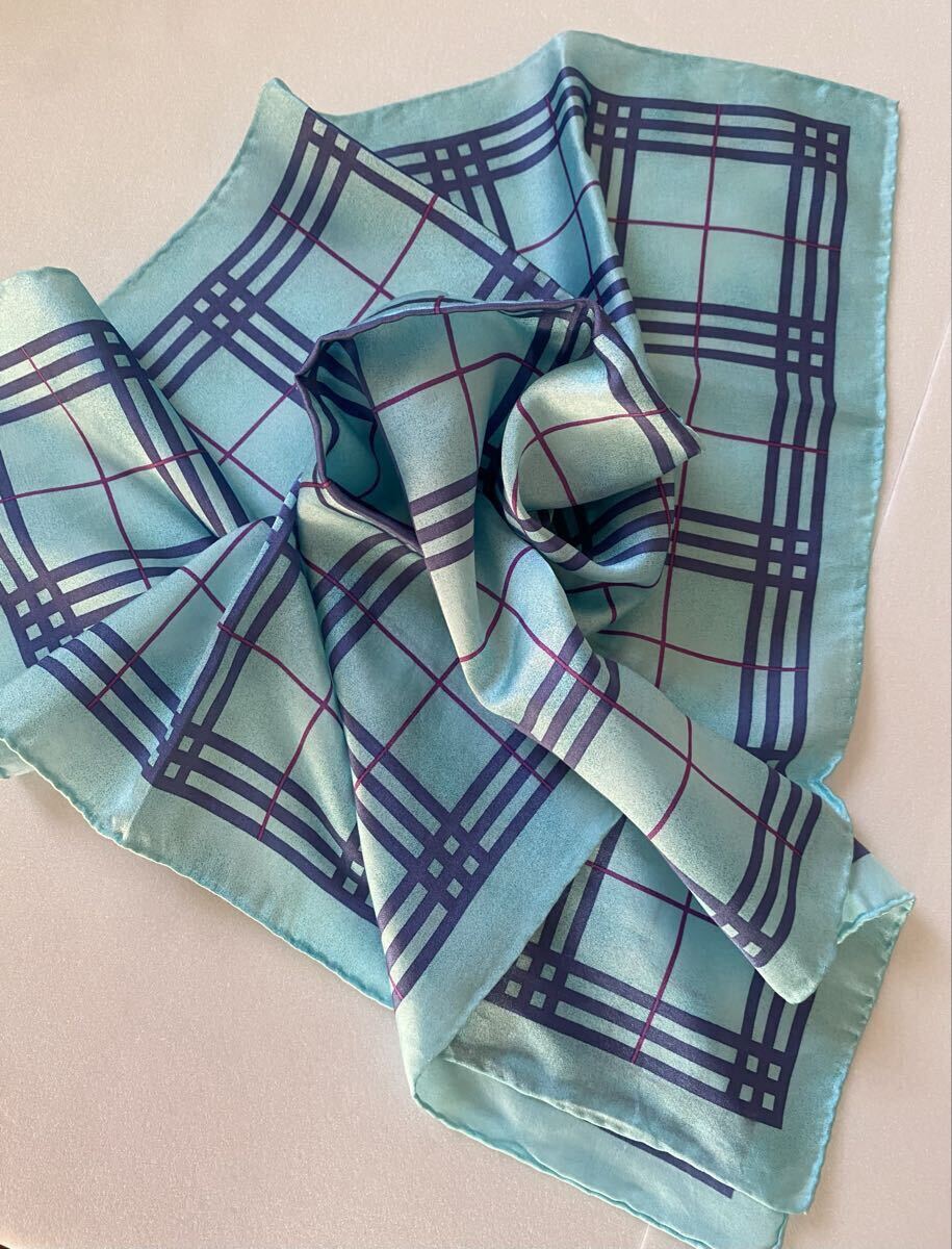 > 未使用品◆BURBERRY バーバリー スカーフ 大判ハンカチ ノバチェック柄 コットンシルク ブルー系 日本製