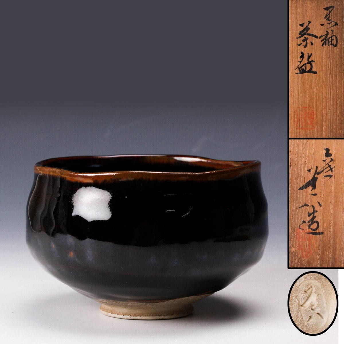 【佳香】六代 高橋道八 黒釉茶碗 共箱 茶道具 本物保証拍卖