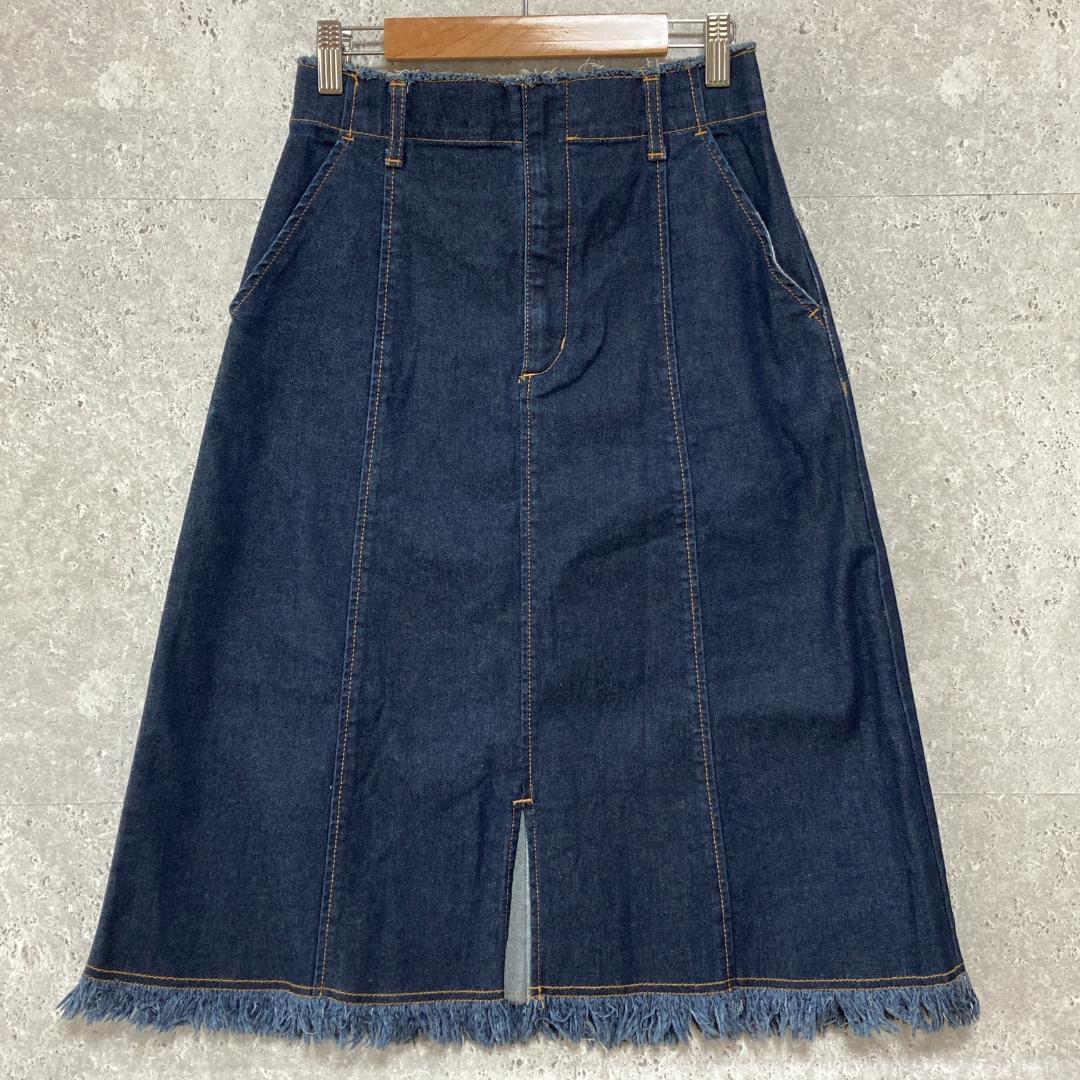 - 【美品】ページボーイ(M)デニムスカート*台形*前スリット*伸縮性*インディゴ