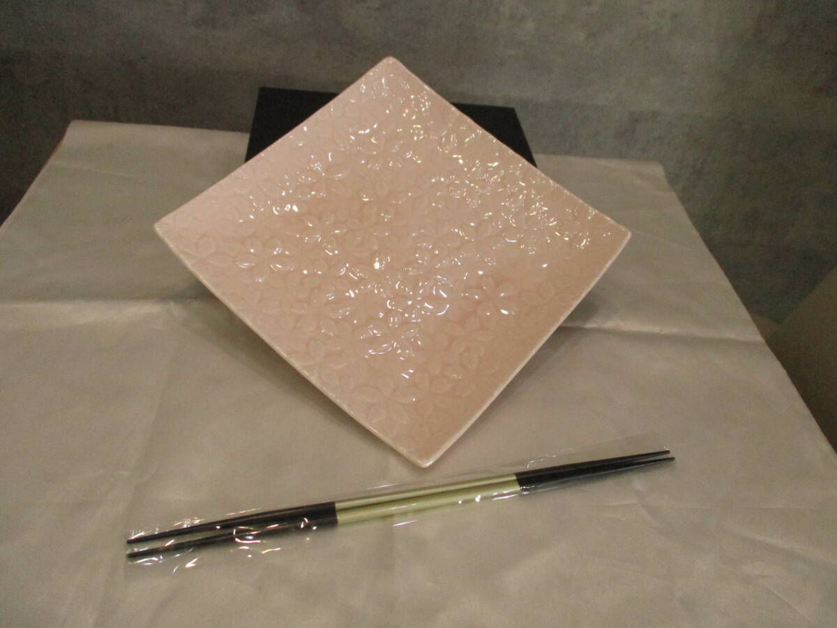 - 角大皿菜箸付 深山桜 和食器 陶器 食器 桜 角大皿 菜箸 保管品 箱入り