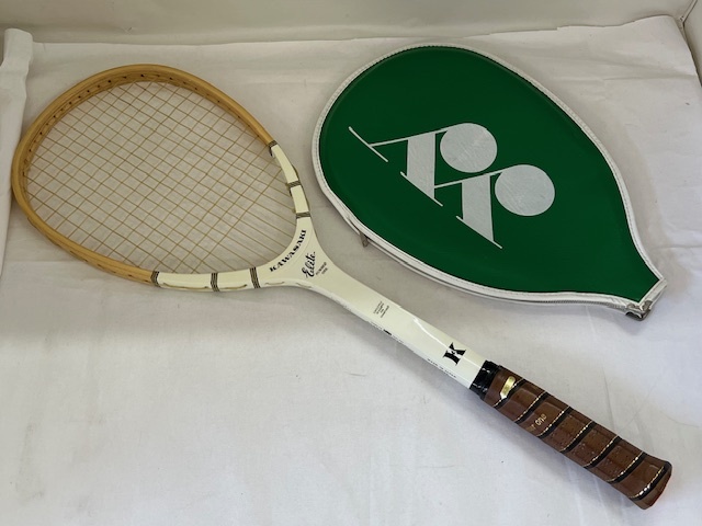 - 【菊水-603】(KH) KAWASAKI Elite NUMBER ONE テニスラケット ソフトテニス 軟式 木製 S-NO.3000 白 YONEXカバーつき/(S)