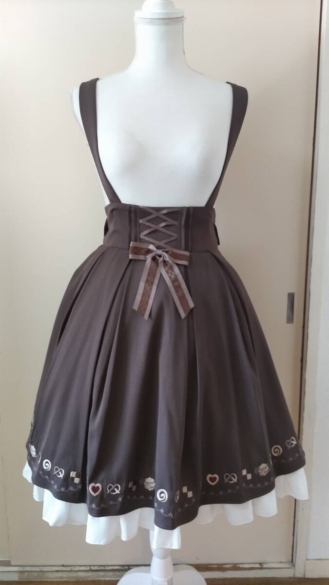 - No.5037_焦げ茶クッキー柄刺繍サススカート